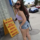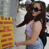 It's often said a fantasy is best left as just that -- a fantasy. Just ask Gabriella Paltrova and her Hubby. In an effort to spice up their sex life, they've really been playing up the "bedroom talk" while fucking. Hubby keeps bringing up "fucking random black guys" while doing the naughty, so, as a couple, they've decided to turn a fantasy into reality. Hubby makes Gabriella like a slut before heading to an adult bookstore that has a reputation for action. Once in a video preview booth, shit goes down! A huge black cock pokes through a gloryhole...and it's on! Only one problem. Hubby's in over his head. This is a situation that, while sounding cool while you're baning your wife and talking dirty, might not be so cool when it actually happens. Next thing you know there's a fight, and Hubby hauls ass...with threats of a divorce. Gabriella didn't dress like a slut and get paraded through an adult bookstore for nothing! She's going to take care of her new, black friend...even if it means having to hitchhike in order to get home!